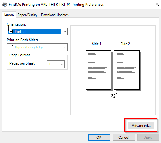 4. Click Advanced: