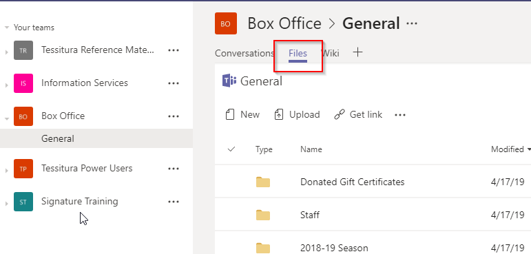 2. Select your desired team and choose the "Files" option: