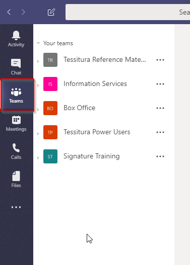 1. Open Teams and navigate to the "Teams" section from the left side panel: