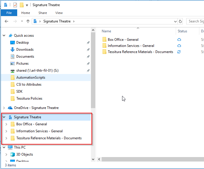 5. Then when you open File Explorer, you'll see your teams files available under "Signature Theatre" (with the little building symbol)